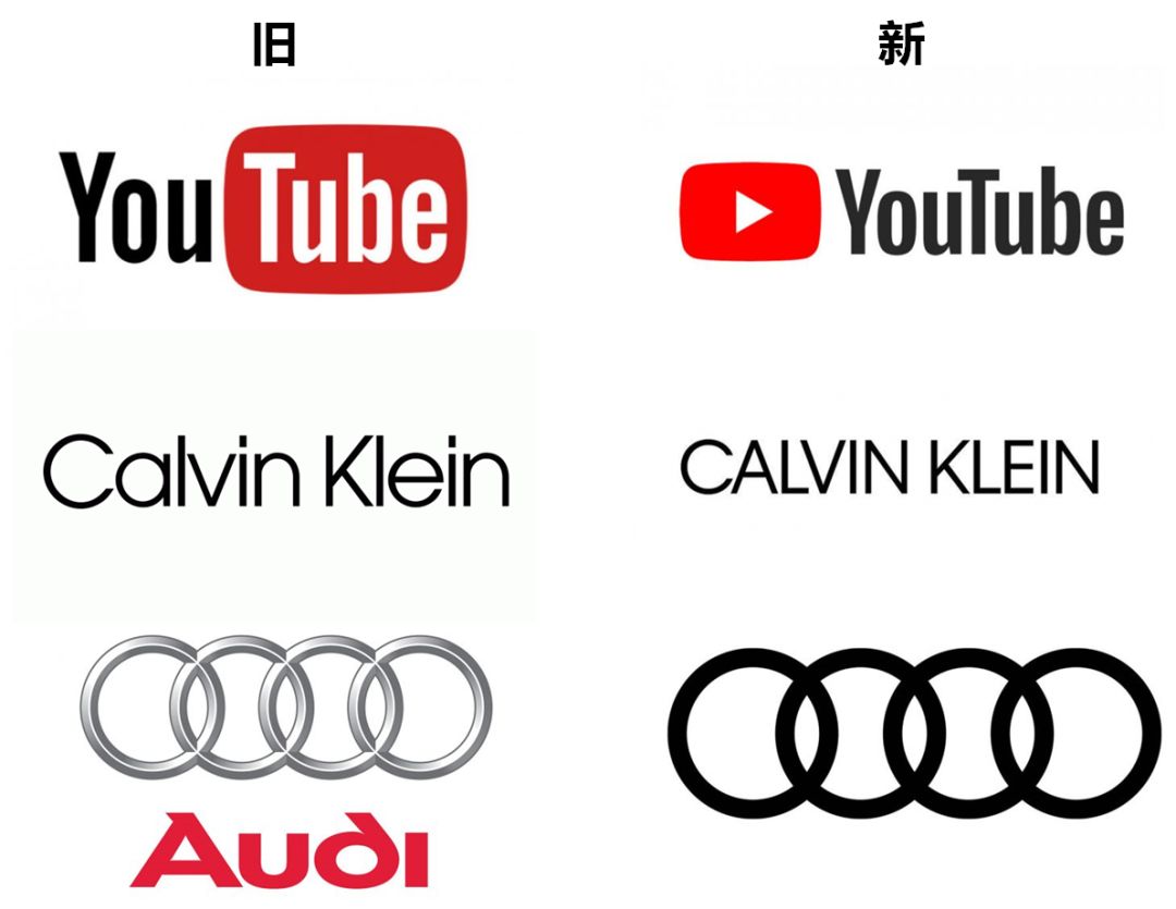 2017年,许多国际知名名牌依然选择将扁平化作为新标识的设计方向,YouTube、Calvin Klein、奥迪赫然在列,新的LOGO前卫、整洁,极具现代感。