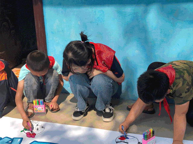 此次前去,不只是捐赠书籍和学习文具,我们还准备了涂鸦画画活动。三幅10米长的梦想主题画卷铺满了教室门口,让孩子们锻炼想象力,培养兴趣爱好。