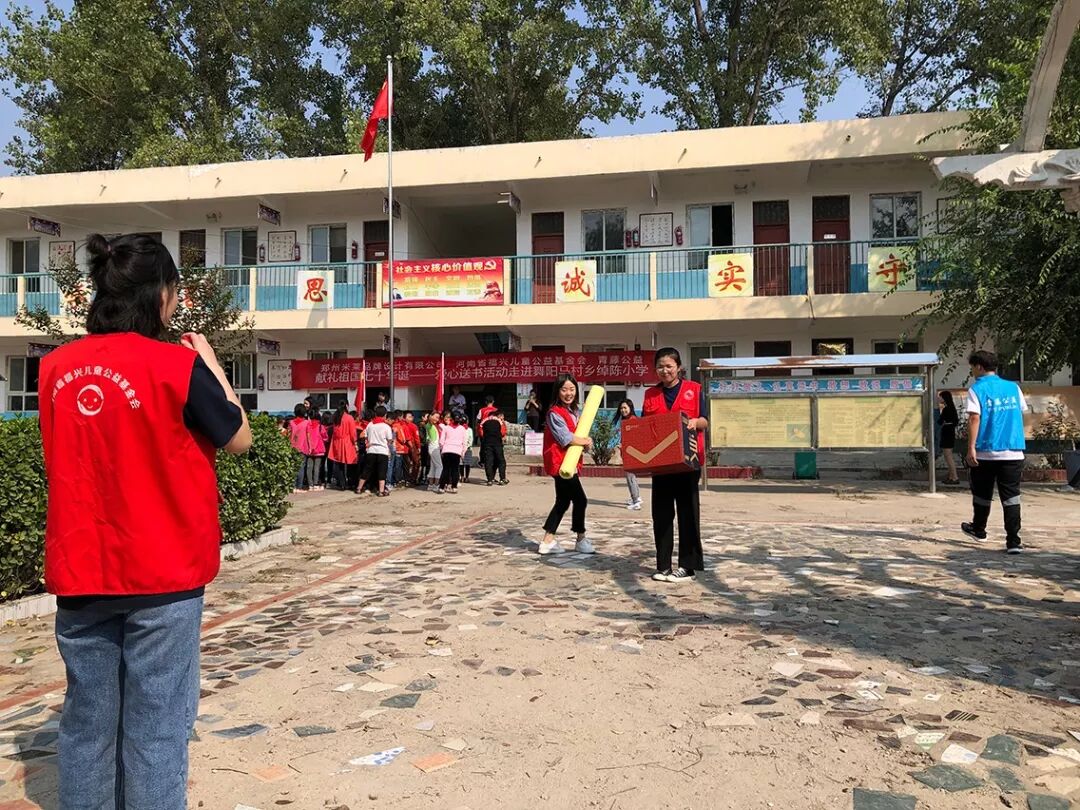 9月28日,郑州米莱品牌策略与设计携手河南省福兴儿童公益基金会、青藤公益献礼祖国七十华诞——爱心送书活动走进舞阳县马村乡绰陈小学。